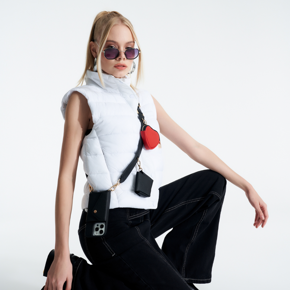 The Lia Lanyard boasts an exquisite 20.2" strap, masterfully crafted from the finest genuine leather and complemented by durable nylon, blending elegance with functionality. Designed for seamless wear around the neck, it enhances your attire with sophisticated and audacious flair. Additionally, it features multiple D-rings for attaching essential everyday items with ease.